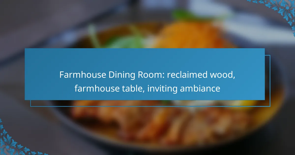 Transform your dining space into a charming farmhouse retreat by incorporating reclaimed wood, a spacious farmhouse table, and warm lighting. These elements work together to create an inviting ambiance that reflects the cozy, rustic charm of farmhouse style. Emphasizing sustainability and unique character, reclaimed wood not only enhances the aesthetic but also contributes to a durable and welcoming environment.