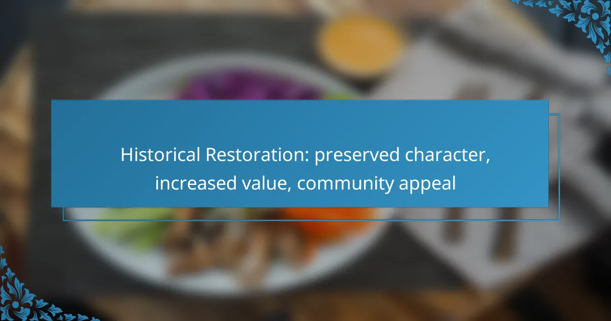 Historical restoration significantly enhances community appeal by preserving the unique character of neighborhoods while increasing property values. This process fosters a sense of pride among residents and attracts visitors, ultimately benefiting local economies.